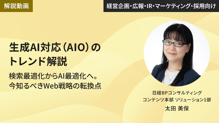 変革は、ブランドから始まる ―――未来を動かすエビデンスとストーリー 企業コミュニケーションにおける広報・IRにおいて、AIO(AI最適化)への対応が必要となる中で、企業が発信するメッセージやストーリーには、エビデンス前提となることが不可欠になりつつあります。本イベントでは「ブランド・ジャパン2026」の最新知見と、企業変革を牽引する先進事例を一挙に紹介。第1部で“いま強いブランド”の共通項と背景を読み解き、第2部で事業変革を軸に価値を高めるコミュニケーションと組織づくりの実践を学びます。広報・ブランディング実務をより高い解像度で捉え、実行していくために、本セミナーを通じて変化の時代にふさわしいブランドリーダーシップと、自社の強みを言語化し巻き込むための言葉とフレームを手に入れましょう。