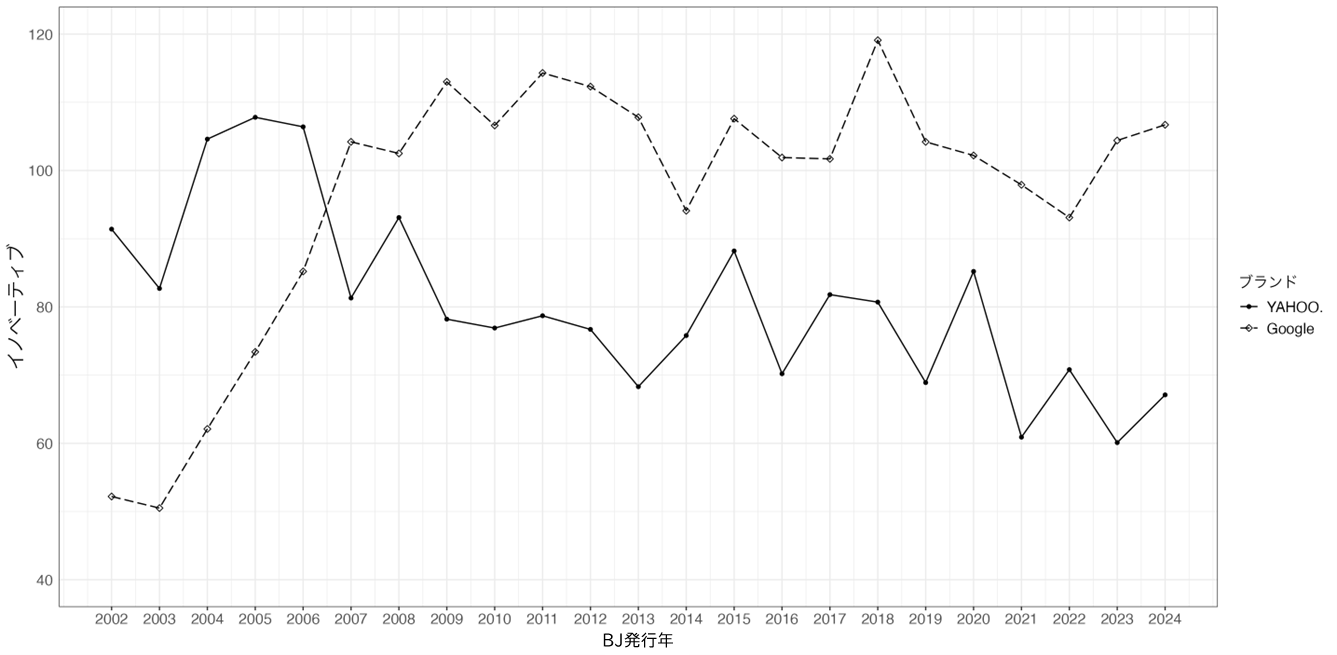 図2 YAHOO! とGoogle イノベーティブ因子スコア変化