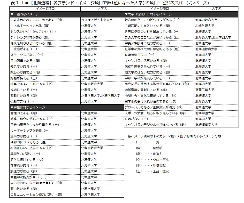 「大学ブランド・イメージ調査」他年度他地域の調査結果