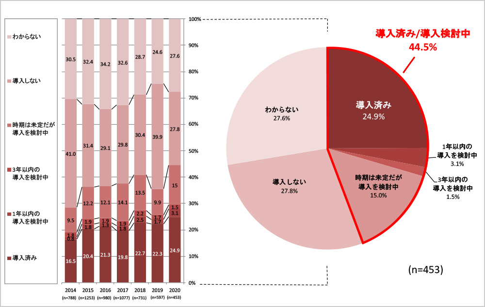 導入済みは24.9%、導入検討中を含めると44.5%でいずれも過去最高に