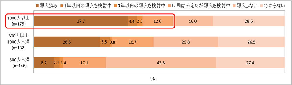 1000人以上では約4割が導入済みで検討中まで含めると過半数